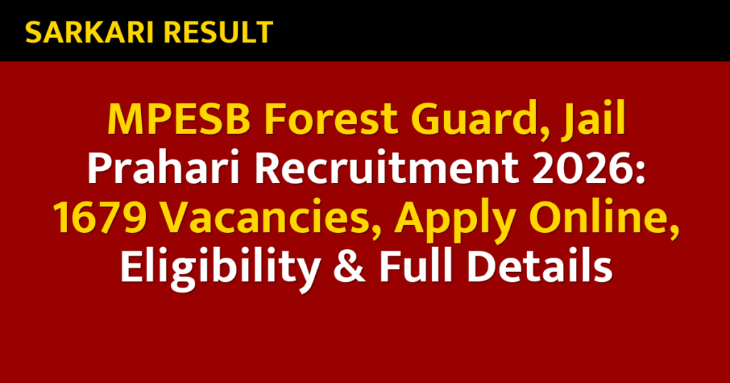 MPESB Forest Guard, Jail Prahari Recruitment 2026: 1679 Vacancies, Apply Online, Eligibility & Full Details