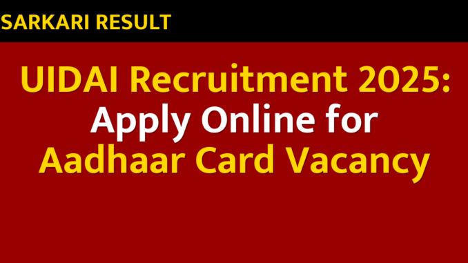UIDAI Recruitment 2025: Apply Online for Aadhaar Card Vacancy