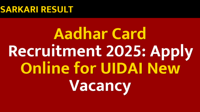 Aadhaar Card Office Recruitment 2025: Direct Hiring Without Examination