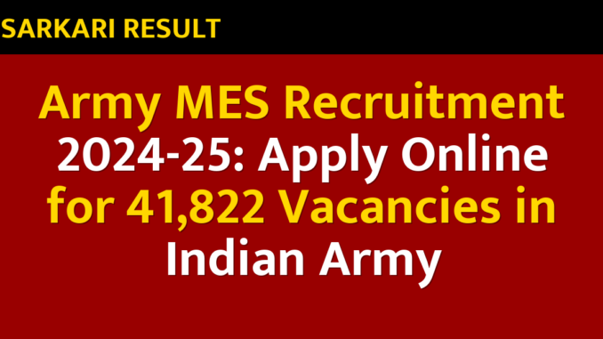 Army MES Recruitment 2024-25: Apply Online for 41,822 Vacancies in Indian Army