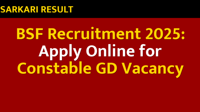 BSF Recruitment 2025: Apply Online for Constable GD Vacancy