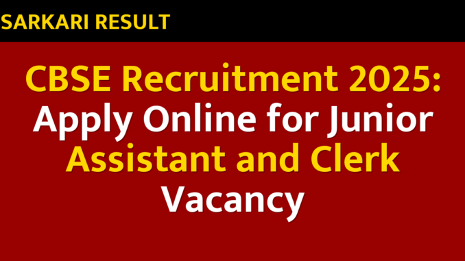 CBSE Recruitment 2025: Apply Online for Junior Assistant and Clerk Vacancy