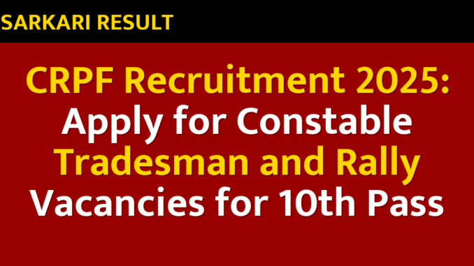 CRPF Recruitment 2025: Apply for Constable Tradesman and Rally Vacancies for 10th Pass