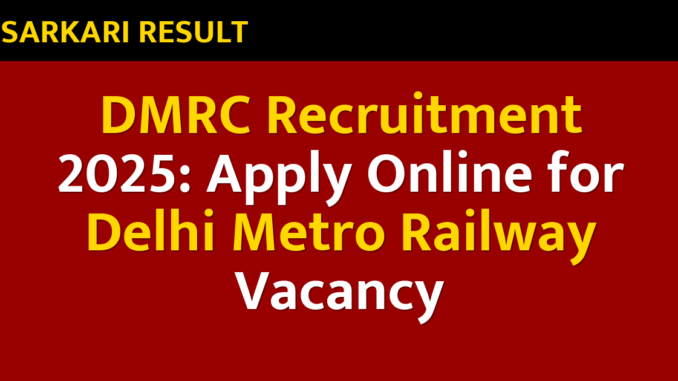 DMRC Recruitment 2025: Apply Online for Delhi Metro Railway Vacancy