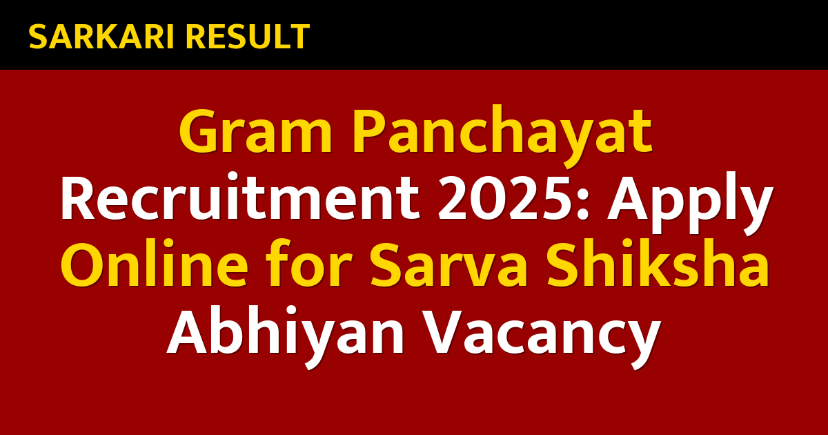 Gram Panchayat Recruitment 2025: Apply Online for Sarva Shiksha Abhiyan Vacancy
