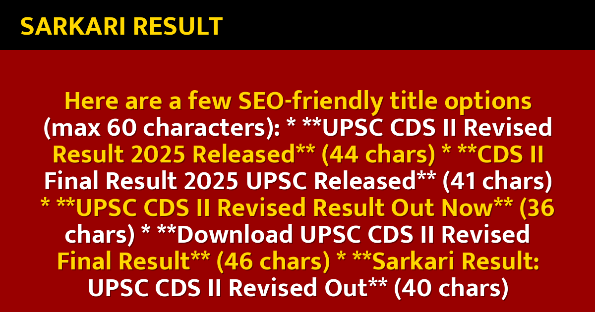 Here are a few SEO-friendly title options (max 60 characters): * **UPSC CDS II Revised Result 2025 Released** (44 chars) * **CDS II Final Result 2025 UPSC Released** (41 chars) * **UPSC CDS II Revised Result Out Now** (36 chars) * **Download UPSC CDS II Revised Final Result** (46 chars) * **Sarkari Result: UPSC CDS II Revised Out** (40 chars)
