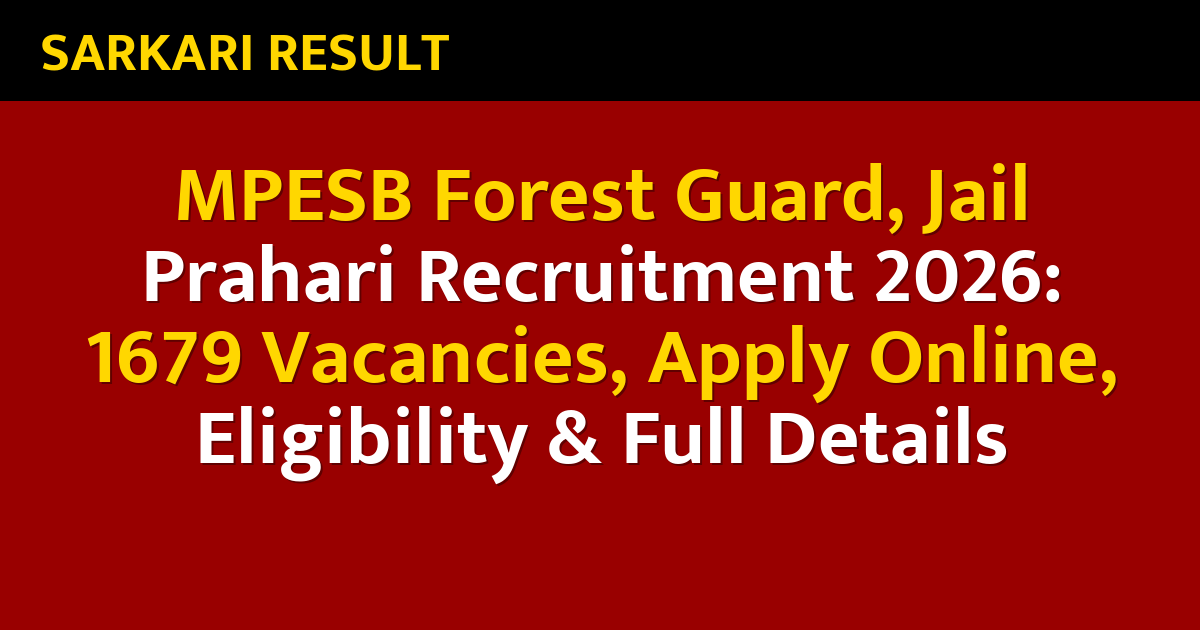 The Madhya Pradesh Employees Selection Board (MPESB) has officially announced the Forest Guard, Jail Prahari, Field Guard, and Assistant Jail Superintendent Recruitment 2026. This recruitment drive brings a total of 1679 vacancies, offering a major opportunity for candidates seeking government jobs in Madhya Pradesh.