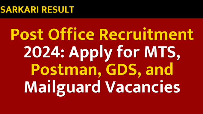 Post Office Recruitment 2024: Apply for MTS, Postman, GDS, and Mailguard Vacancies