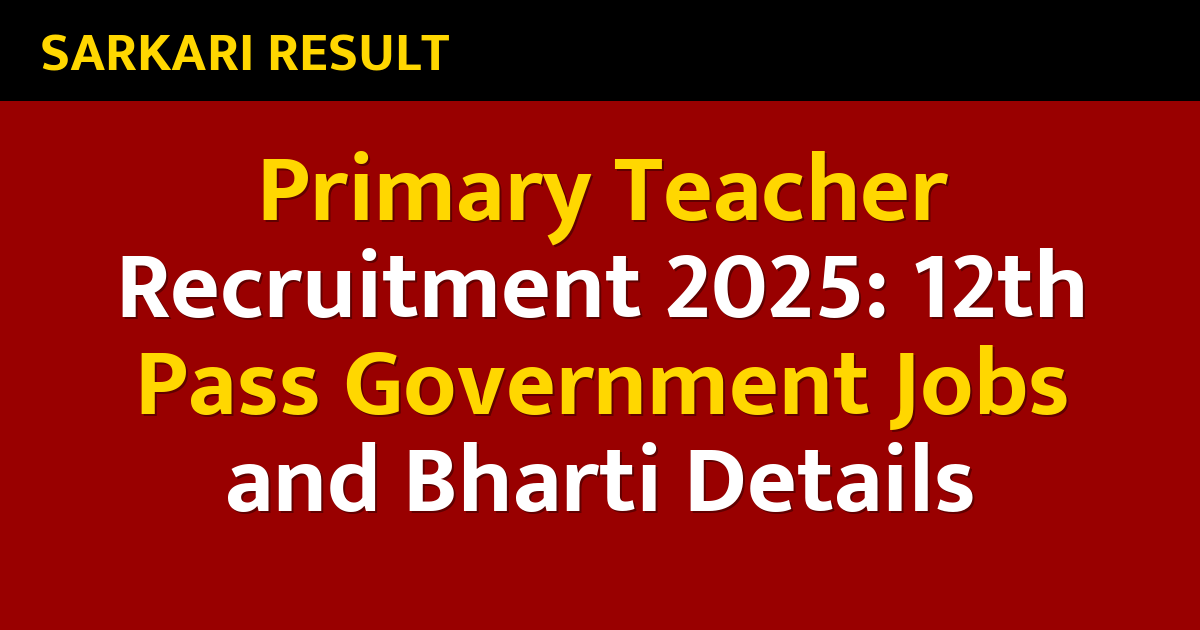 Primary Teacher Recruitment 2025: 12th Pass Government Jobs and Bharti Details