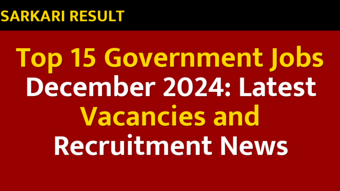 December 2024 Government Job Alert: 15+ Big Vacancies Across India – Apply Now!