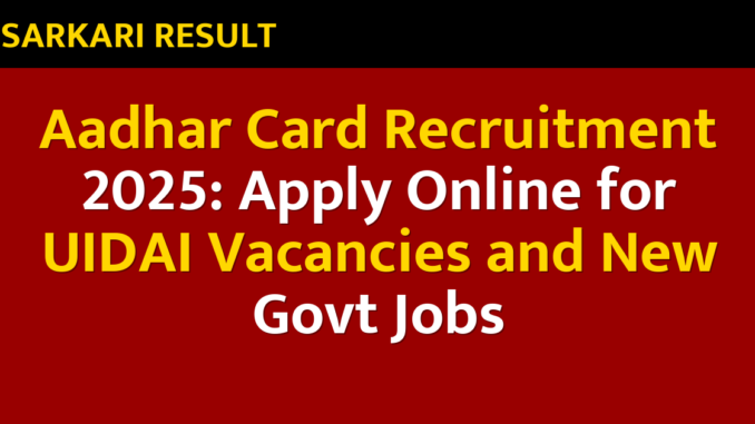 Aadhar Card Office Recruitment 2025: Apply for Various Posts Without Exam!