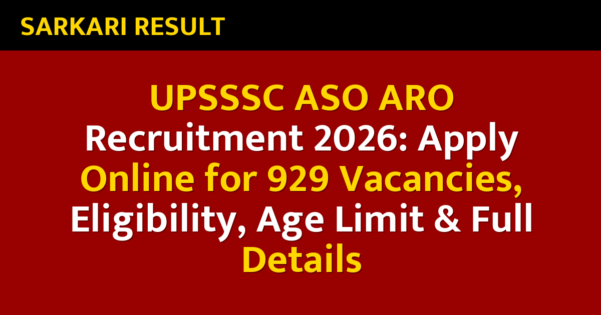 The UPSSSC ASO ARO Recruitment 2026 provides an excellent opportunity for candidates aiming for government jobs in Uttar Pradesh. With 929 vacancies and a structured selection process, candidates should prepare strategically and apply on time.