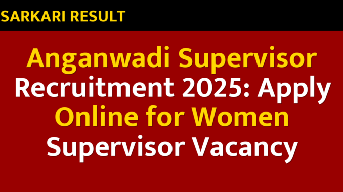 Anganwadi Supervisor Recruitment 2025: Apply Online for Women Supervisor Vacancy